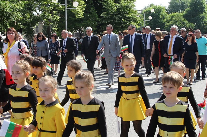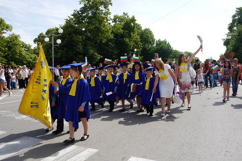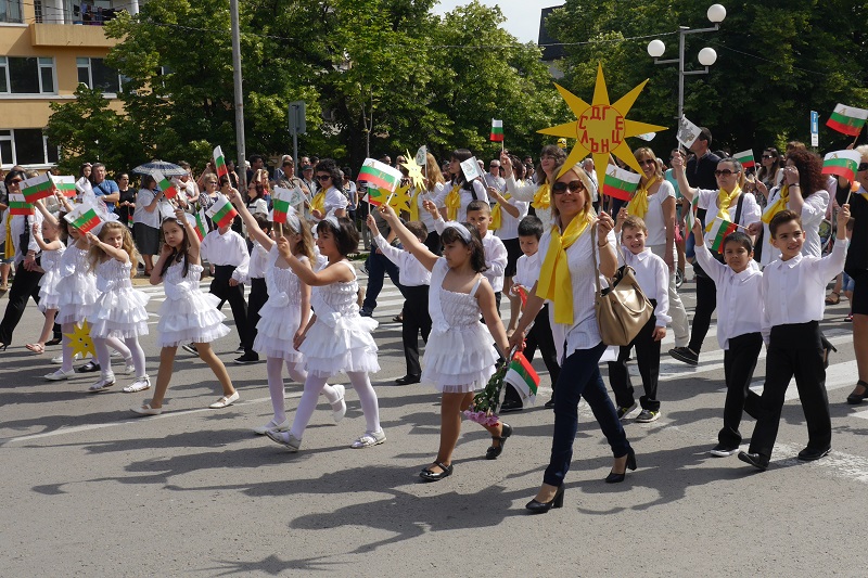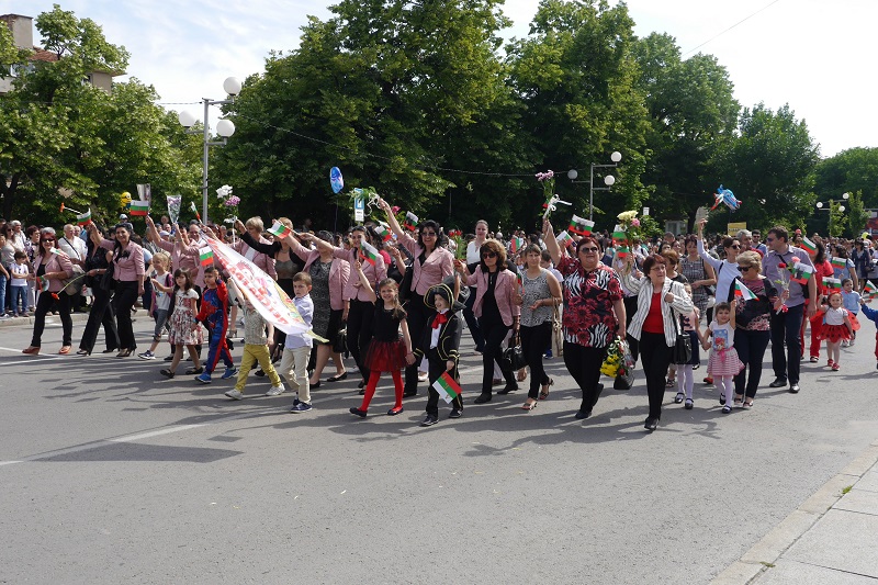 Кметът Любомир Христов, народните представители Румен Генов и Димитър Александров, областният управител Стефан Желев и председателят на Общинския съвет Борислав Беджев поведоха представителните блокове на висшите учебни заведения в града, училищата и детските градини, читалищата, просветните и културните организации. Под звуците на химна на 24 май „Върви, народе възродени“ пешеходната зона от „Кристал“ до площад „Освобождение“ се изпълни от пъстрото множество на пищното шествие в прослава на българската духовност, писменост и култура.