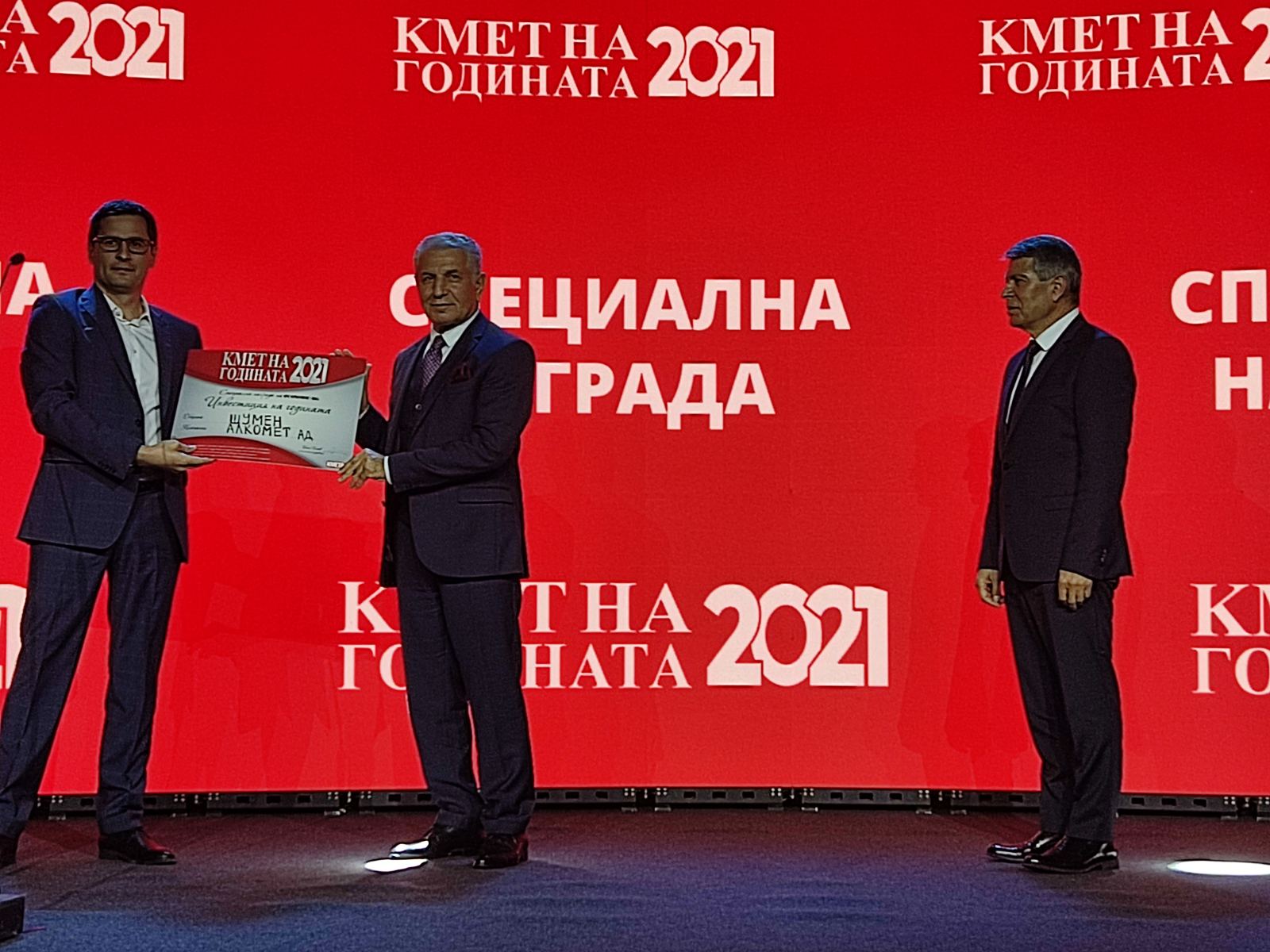 Със специалната награда „Инвестиция на годината“ в тазгодишното издание на конкурса „Кмет на годината“ бяха отличени днес председателят на Надзорния съвет на „Алкомет“ АД Фикрет Индже и кметът на община Шумен Любомир Христов.