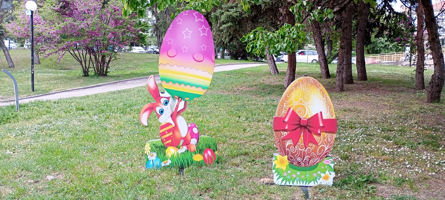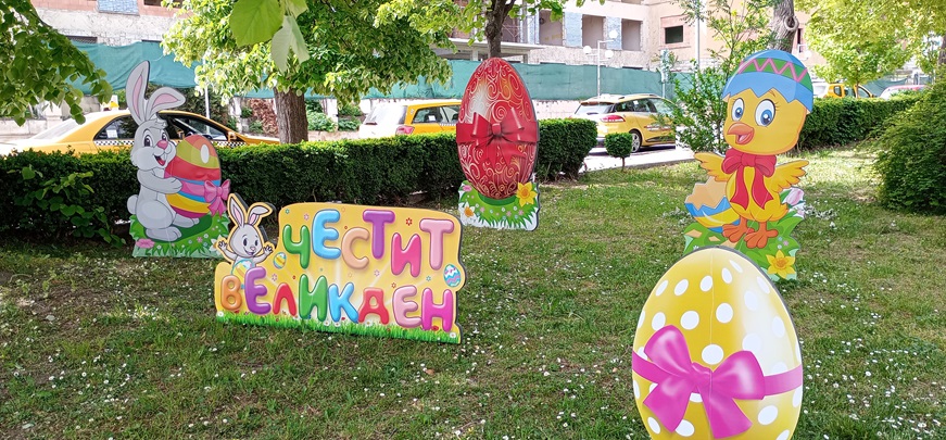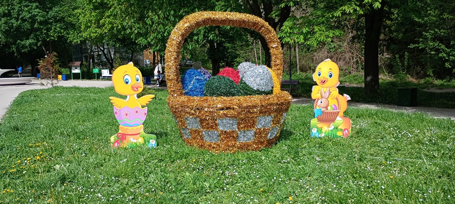 Тематичната украса е нова и ще радва жителите и гостите на Шумен за великденските празници. В пространството около Община Шумен са разположени декоративни елементи с формата на яйца, зайчета и пилета, с които децата могат да се снимат. Празничното оформление продължава и по главната улица. С разнообразни идеи в украсата тази година се включват част от детските градини, всички ясли, екипите на социалните структури в града и техните ползватели. Великденски кът е обособен и в тревната площ до площад „Кристал“, където пъстри яйца и великденски зайчета ще радват минувачите. Празничният облик се допълва от декорацията до Районното управление на МВР- Шумен. На входа на парк „Кьошковете“ е поставена светеща великденска кошница с пъстри яйца, която вечер ще допълва празничната атмосфера. Украсена е и градската градина, в която са разположени къщичка и надпис „Честит Великден!“.