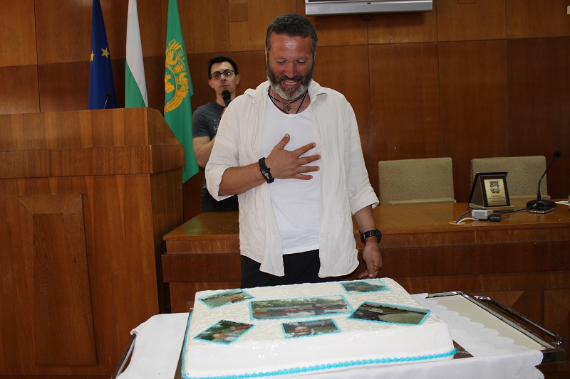 Зам.-кметът Найден Косев също посрещна Тишо и го поздрави за успеха. „Радвам се, че посрещаме днес Тихомир жив и здрав. Горд съм, че той успя да преодолее трудностите и препятствията, не се отказа да осъществи мечтата си и показа, че в нашия град има такива достойни хора“, обърна се към приключенеца Найден Косев. Той му връчи и специален плакет с герба на Шумен.