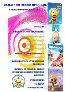 Празнична програма с прожекции на анимационните филмчета „Пчеличката Мая“ от 9.30 часа, „Бебе Бос“ от 11.30 часа, „Щъркели“ от 13.30 часа и „Жълтурко“ от 15.30 часа и атрактивна разходка в библиотечните книгохранилища организира Детският отдел на Регионалната библиотека „Стилиян Чилингиров“ на 1 юни – Международния ден на детето. В програмата е включена и инициативата „Библиотекар за един ден“, която дава възможност на децата да се запознаят с професията на библиотекаря и да се включат в неговата ежедневна работа. На 1 юни библиотеката предлага и безплатен читателски абонамент за децата до 7-годишна възраст.