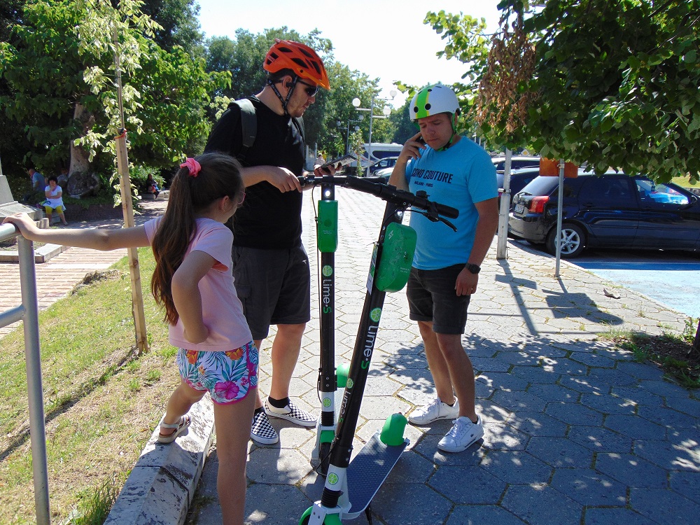 Първите електрически скутери в Шумен бяха показани днес пред представители на медиите и зам.-кмета по строителство и екология Боян Тодоров. Четири от общо 100 скутера бяха разположени по бул. „Славянски“ срещу Военния клуб в града, където представителят на фирмата „Лайм“ за Шумен Антон Йорданов тества превозните средства. Върху скутерите бяха поставени и безплатни каски за първите потребители. Всеки от тях е снабден и с обяснителна табелка, която дава подробен инструктаж как се използва електрическото превозно средство.