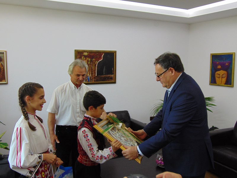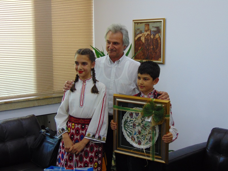 Главният художествен ръководител на Детския танцов ансамбъл „Пъргавелче“ Чавдар Чанов заедно с Гергана Георгиева и Теодор Желев бяха гости днес на кмета Любомир Христов. Те разказаха за участието си в празниците, организирани в турския град Орхангази по повод Деня на детето, който в Турция се чества на 23 април. В знак на благодарност за оказаната подкрепа от страна на общината това турне да се осъществи танцьорите от ансамбъла подариха на кмета керамичен плакет – наградата си от участието във фестивала в Турция.