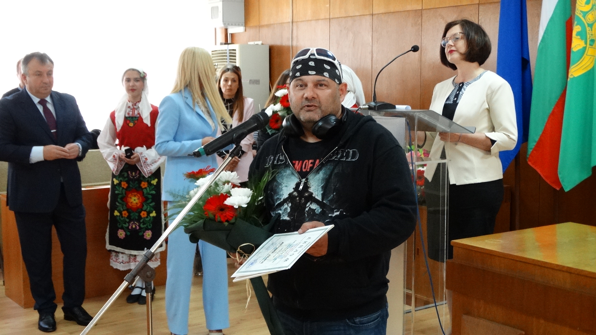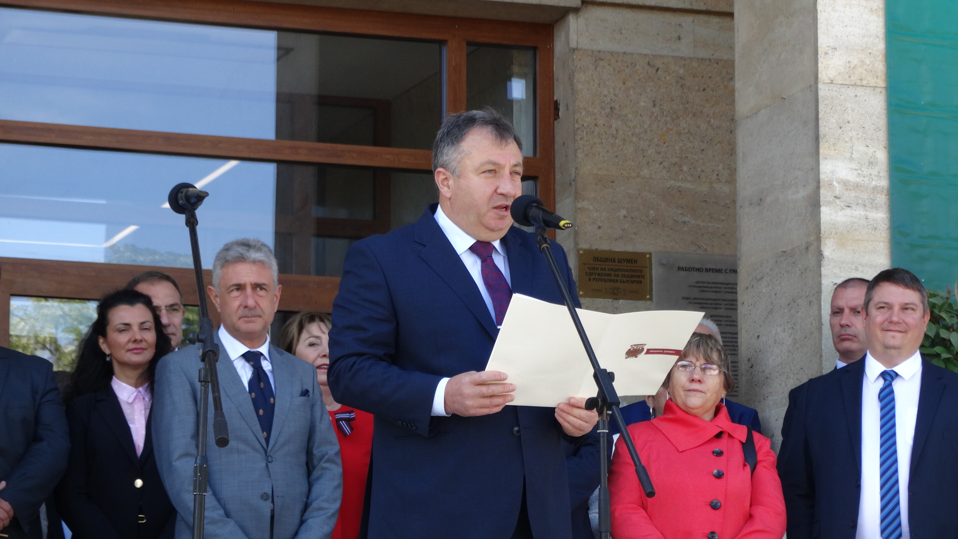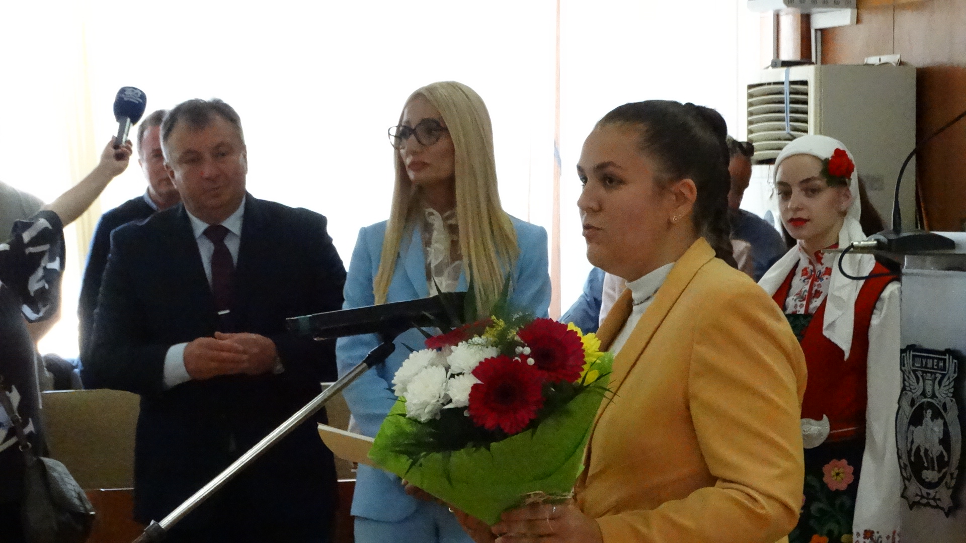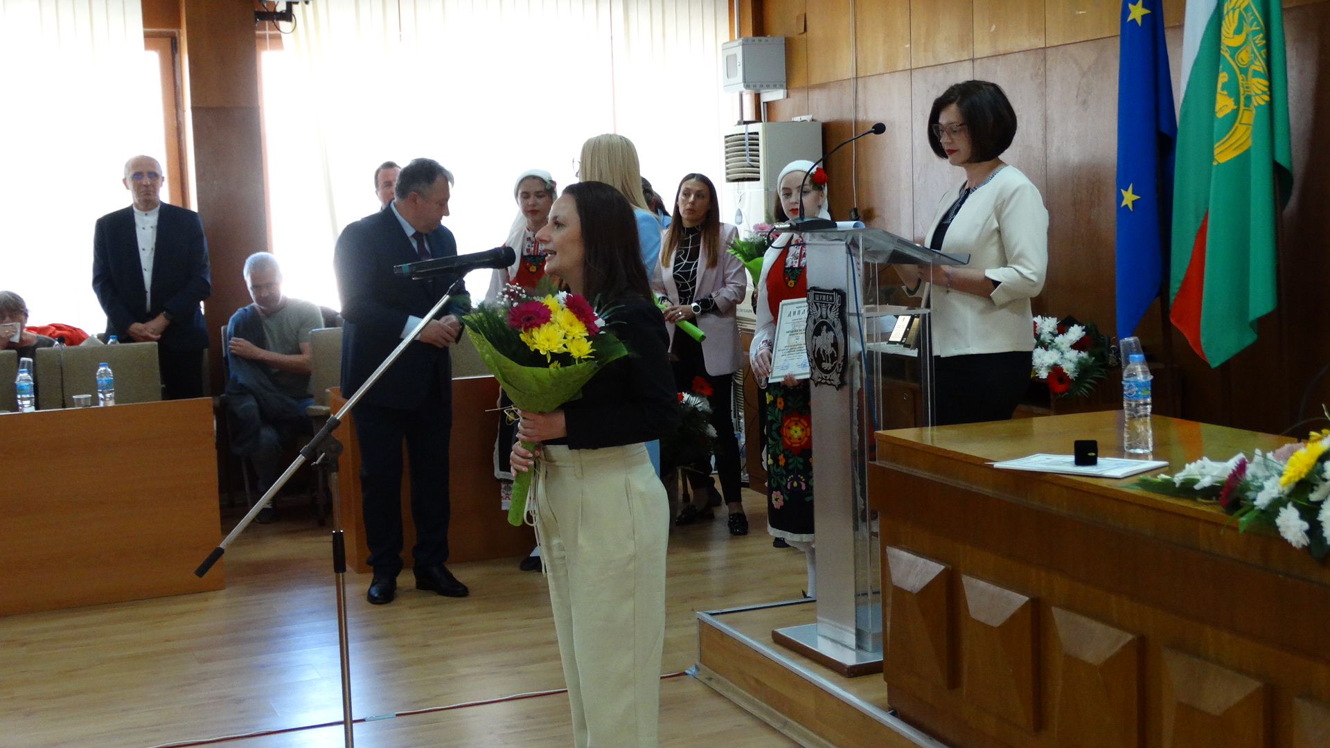 Честта да издигне знамето на град Шумен заслужи Красимир Савов – хореограф-режисьор. Награден с орден Кирил и Методий – първа степен, Кристално огърлие на Съюза на българските музикални и танцови дейци, Златна кобилица на CIOFF – България, Златен плакет на банатските българи от Винга, спечелил сребърна и златна брадви на конкурса в Закопане – Полша и Почетен гражданин на град Шумен. Съгражданката ни – курсант главен старшина Анна Стоянова – член на екипажа на научноизследователския кораб “Св. св. Кирил и Методий”, който плава на мисия до Антарктида, върна на кмета знамето на Община Шумен, развято в българската база на остров Ливингстън.