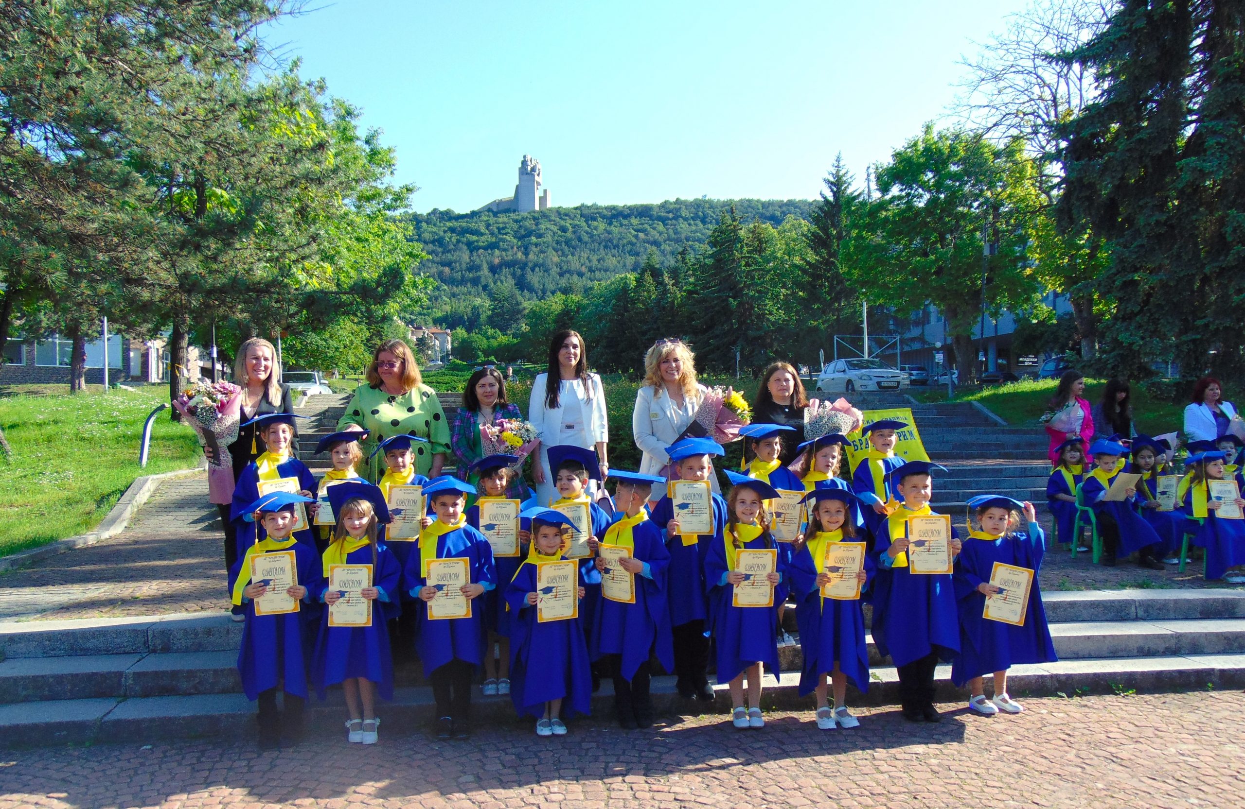 На тържествена церемония до Паметника на свободата, Детска градина „Братя Грим“ изпрати своите зрелостници. Директорът на учебното заведение Евгения Михова откри събитието с послание към децата за много успехи в училище.