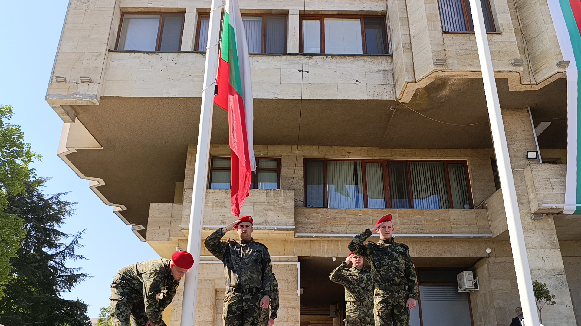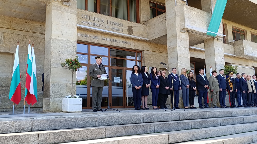 След това се състоя ритуалът по тържественото издигане на националния флаг пред Административната сграда на Община Шумен.