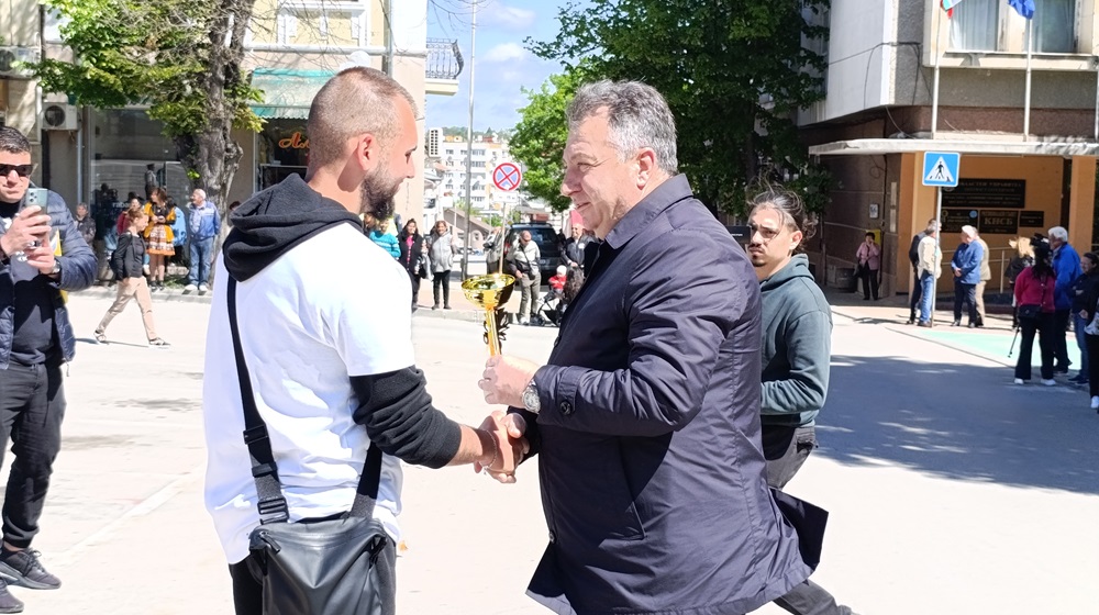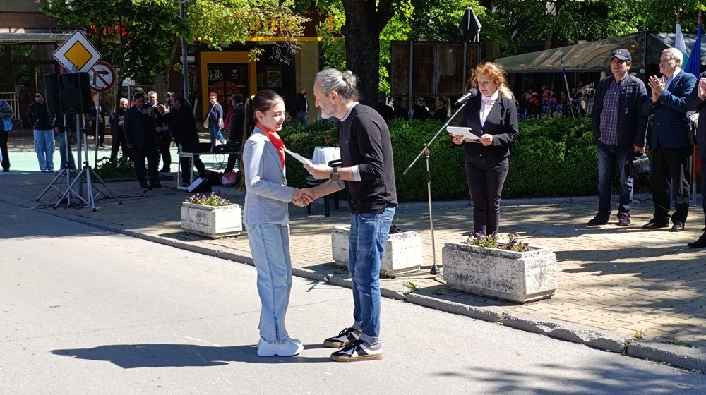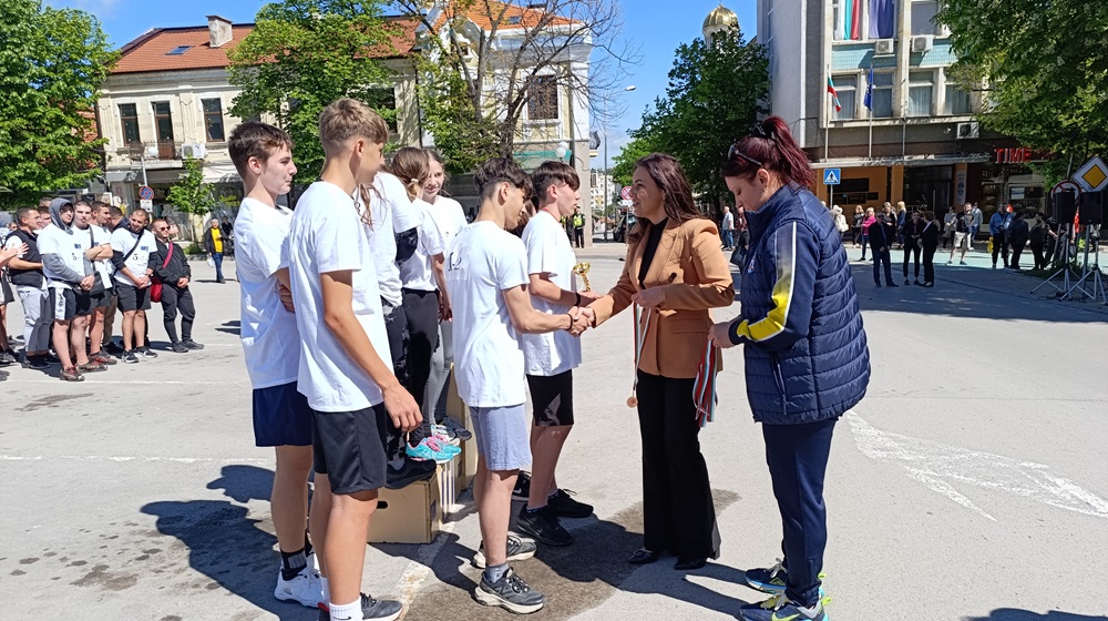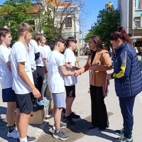 Специална награда за участие в ученическите щафета връчи кметът на представител от Професионалната гимназия по механотехника, електроника и телекомуникации и транспорт – Шумен.
