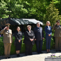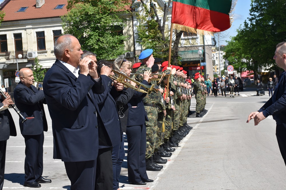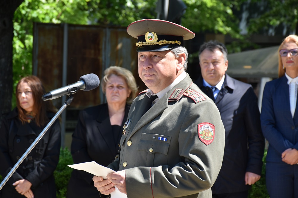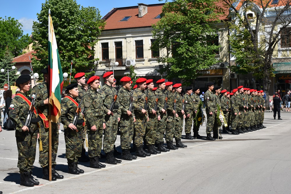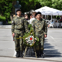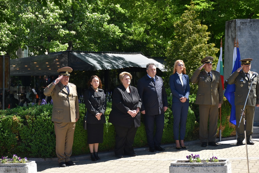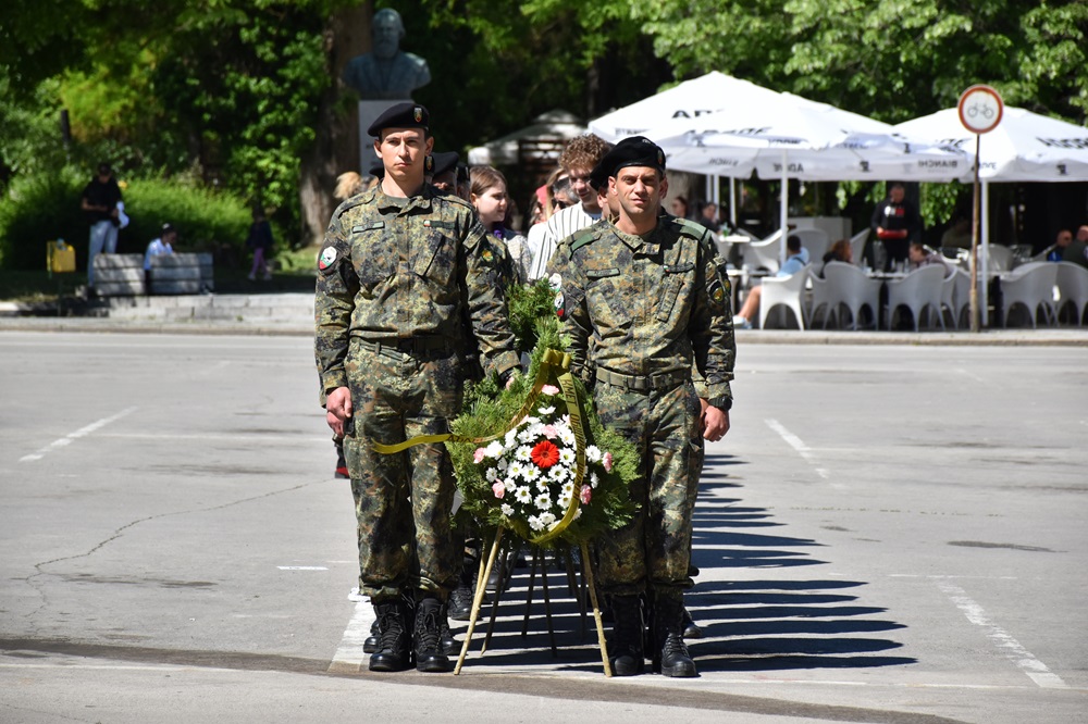 След това се състоя тържествената церемония по поднасяне на венци и цветя на пл. „Кристал“ пред Паметника на загиналите във войните шуменци. В церемонията участваха кметът проф. Христо Христов, областният управител Катя Иванова, председателят на Общинския съвет Ася Аспарухова и др. Приветствено слово произнесе подполковник Огнян Марков, началник на Военно окръжие – Шумен, който се обърна към гражданите с думите: „В този тържествен ден пожелавам на всички нас да бъдем по-амбициозни, по-смели, по-солидарни и по-единни. Нека ежедневно защитаваме мира, демокрацията, правата на човека и свободата“.