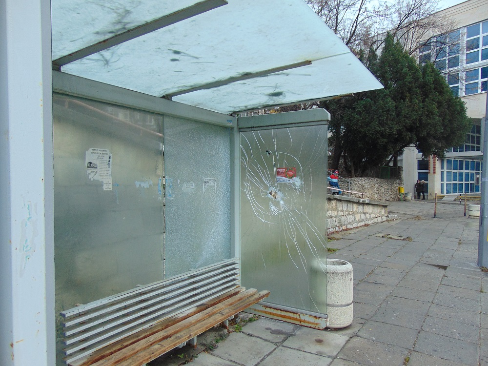 Обиколка на инспекторите по чистотата из града в първия работен ден на 2021-ва година показа, че освен съдовете за отпадъци жертва на вандали са станали автобусни спирки, пейки, кошчета и осветителни тела по детски и спортни площадки. Потрошени са стъклените стени на няколко автобусни спирки по бул. „Симеон Велики“ в близост до светофара на зала „Младост“ и до НОИ, както и в кв. „Боян Българанов“ по ул. „Самара“. Унищожени са пейки на детската площадка в градинката между улиците „Панайот Волов“ и „Марица“, части от мекото модулно покритие, както и осветителни тела на спортната площадка в съседство. За възстановяване на щетите, включително за ремонта на уличните стълбове и мантинели, унищожени преди Коледа, ще са необходими повече 20 000 лева. Средства, които могат да се използват за благоустрояване, коментират от общината.