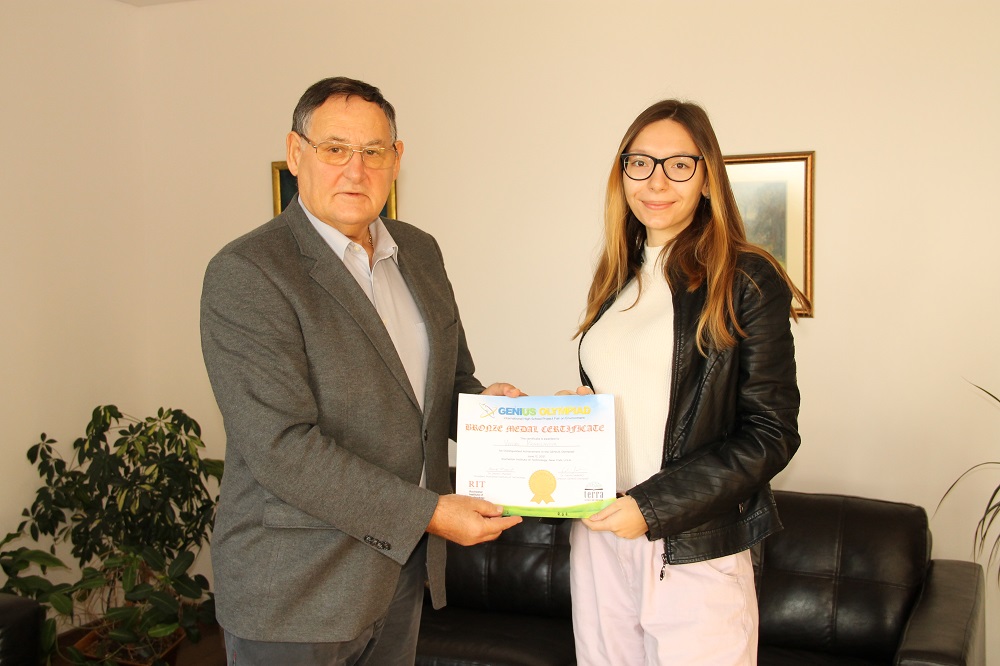Кметът на Шумен Любомир Христов връчи днес на Вивиан Антонова Крайславова бронзов медал от най-престижното събитие за гимназисти с екологична носоченост – международната олимпиада GENIUS OLYMPIAD.