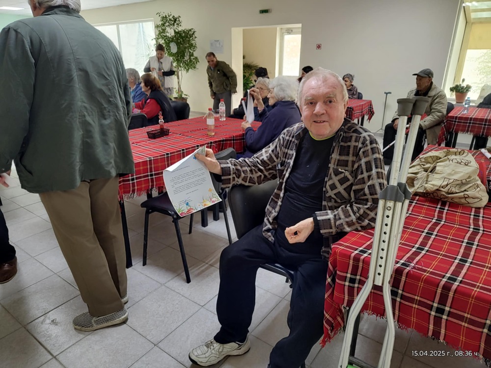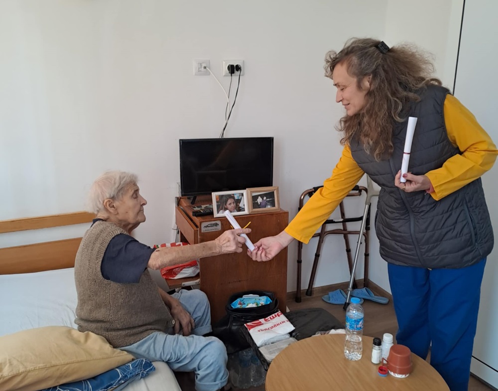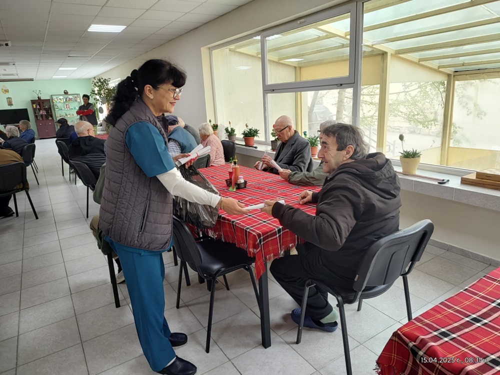 Всеки от настанените в Дома хора получи и козунак по повод наближаващите празници. За хората специално бяха изготвени лични послания от името на кмета – за здраве, надежда и дълголетие.