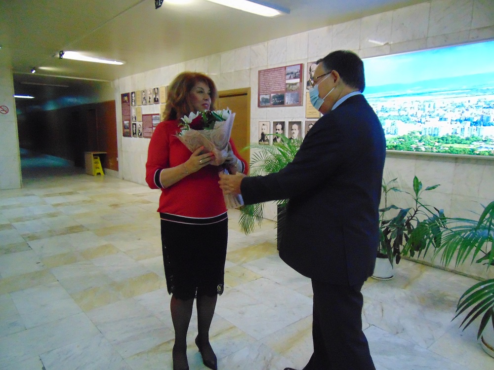 Кметът подари на Илияна Йотова плакет с Мадарския конник. А по-рано той се срещна и с председателя на Съюза на народните читалища Николай Дойнов, който му връчи Почетен знак на Съюза на народните читалища като израз на благодарност за включването в Националния комитет за отбелязване на 165 години общонародно читалищно дело. От името на общинското ръководство кметът подари на Николай Дойнов картина от шуменския художник Благомир Папазов.