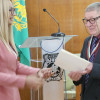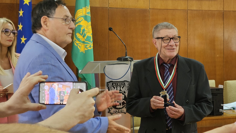 Неговата номинация беше гласувана на предходната сесия на Общинския съвет с пълно единодушие, а при връчването на почетния знак днес всички общински съветници станаха на крака и го посрещнаха с аплодисменти.