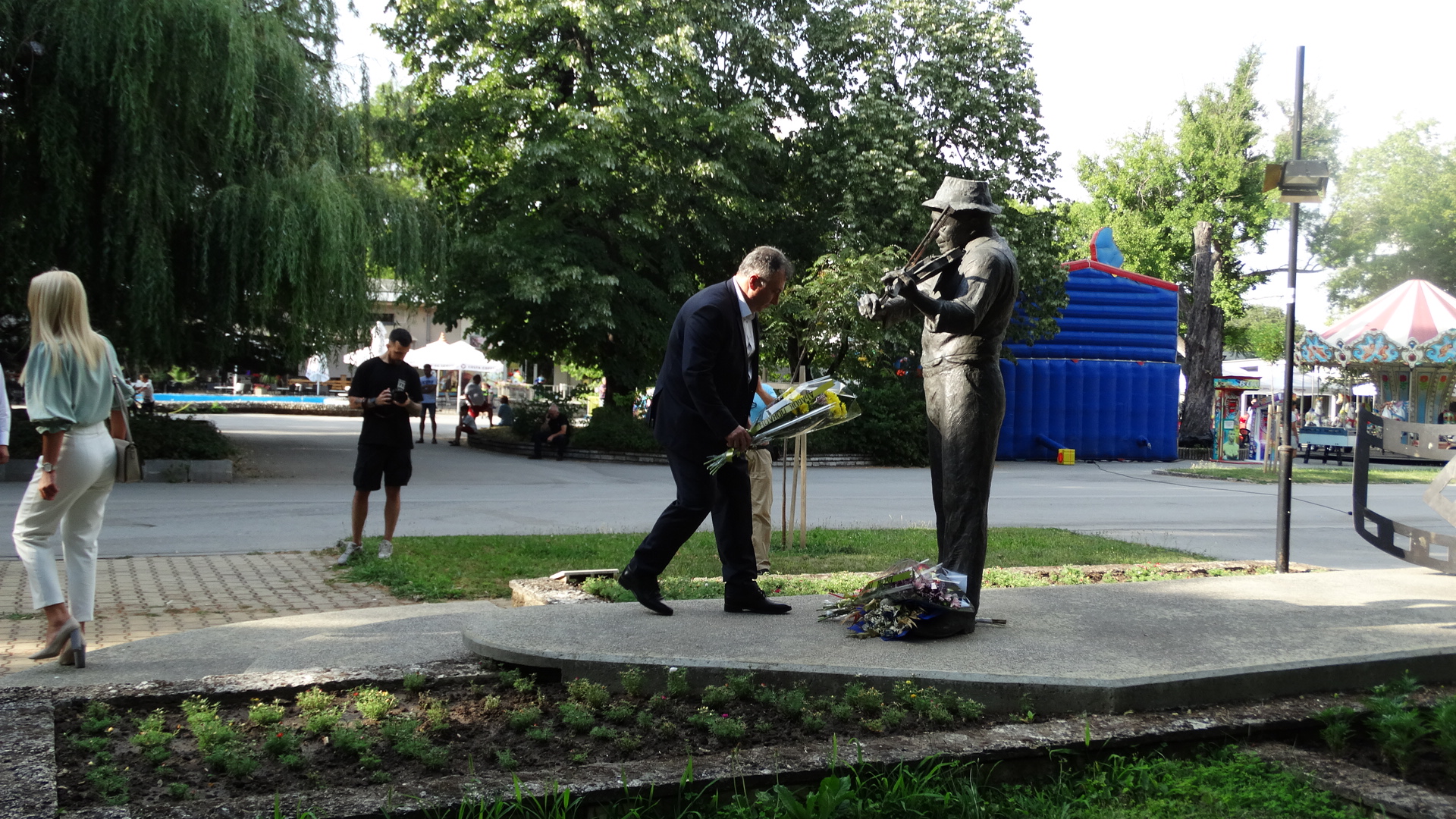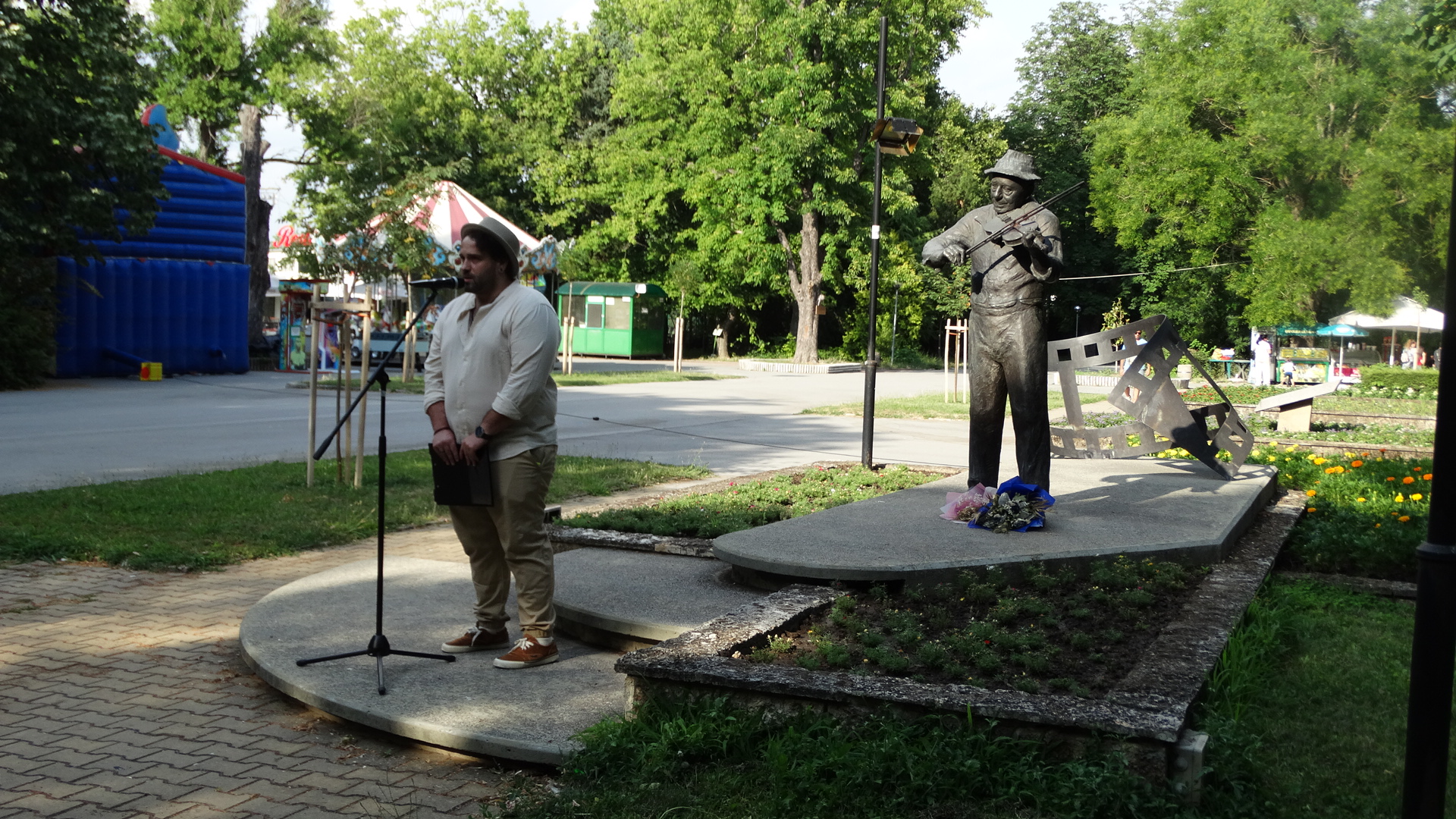 Цветя понесоха директорът на Драматично-кукления театър „Васил Друмев“ Илия Виделинов, кметът проф. Христо Христов, председателят на Общинския съвет Ася Аспарухова, актьори и граждани. Фестивалът продължи с представлението “Да, г-н Премиер“ с участието на Кръстю Лафазанов и Мариан Бачев.