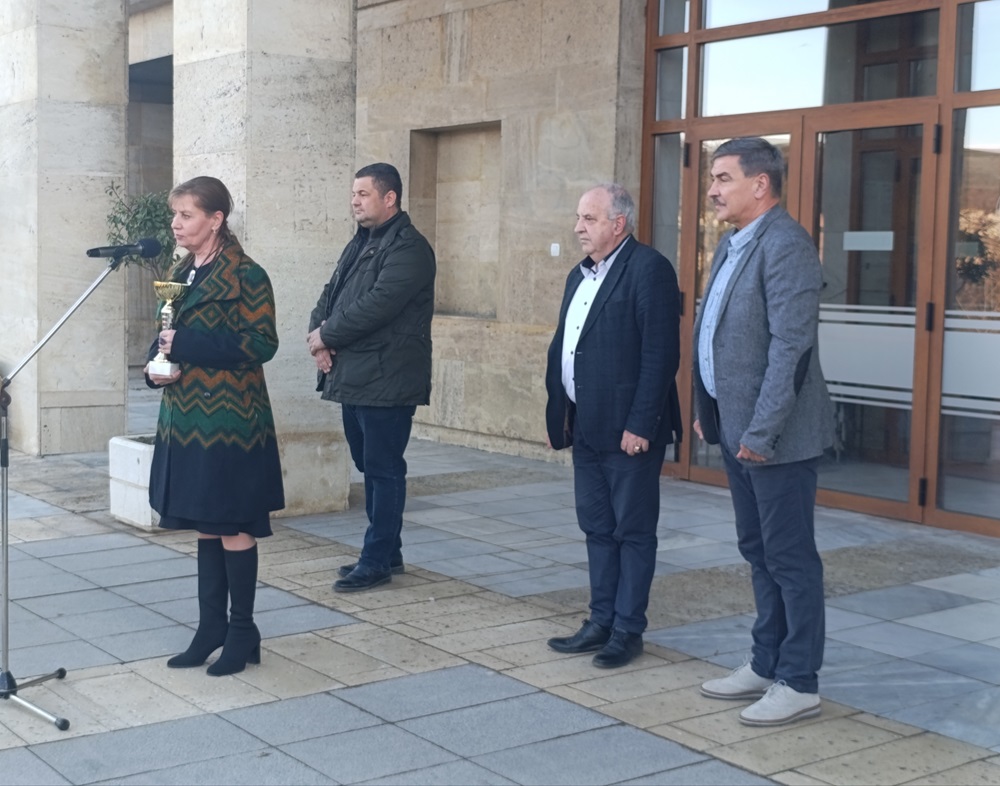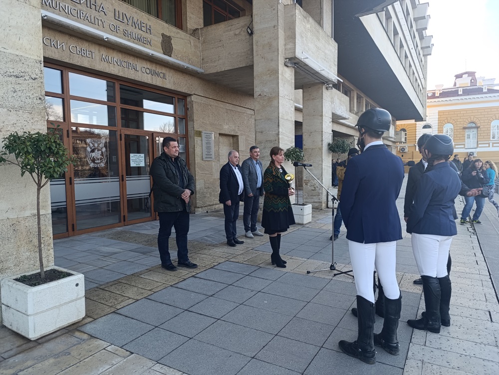 Жокеите от клубовете по конен спорт в Шумен връчиха купа на заместник-кмета по образование и култура доц. д-р Виктория Ковчазова.