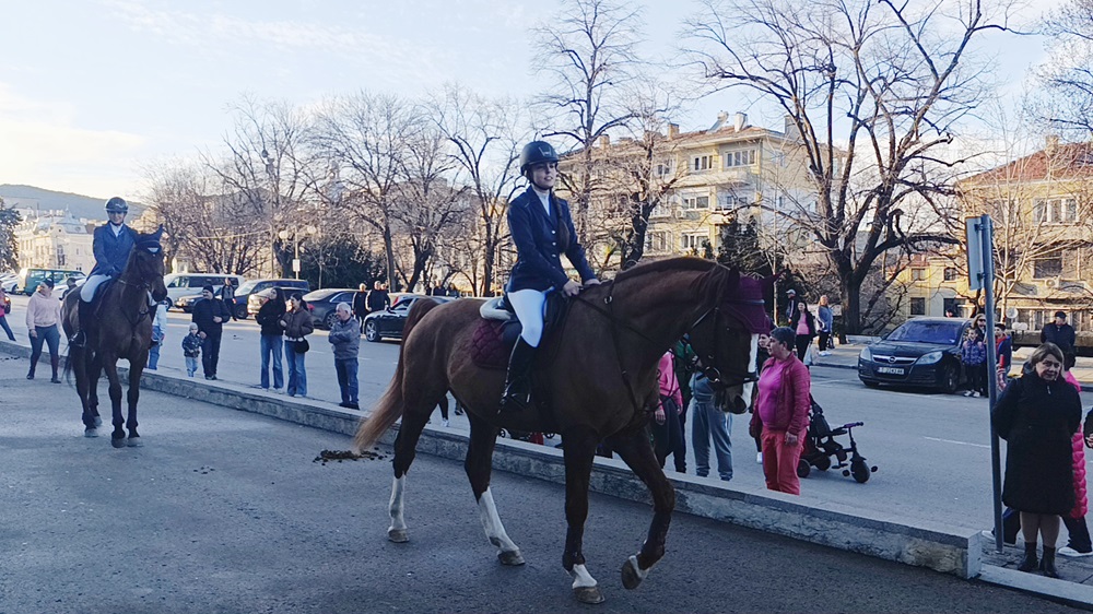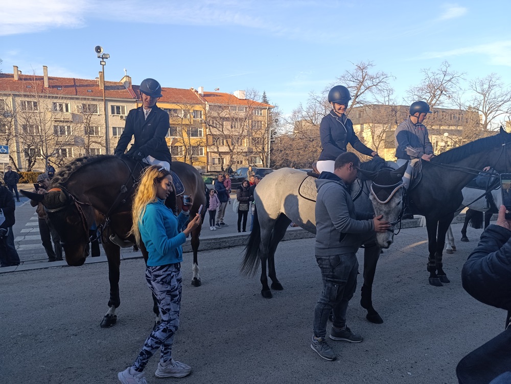 Дефилето започна от базата на Хиподрума в 16:20 часа днес (петък) и премина през централната градска част, като крайната точка бе сградата на Общината. Кметското ръководство посрещна младите жокеи и техните коне.